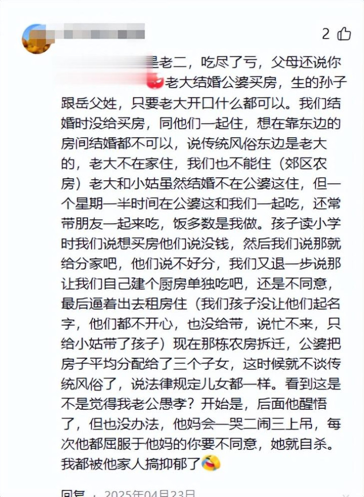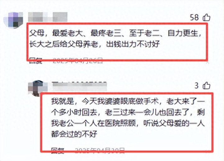 一位网友的留言,读来险些字字诛心:“我这个夹在中间的,就像是捡来的,姆妈不疼爸爸不爱。”