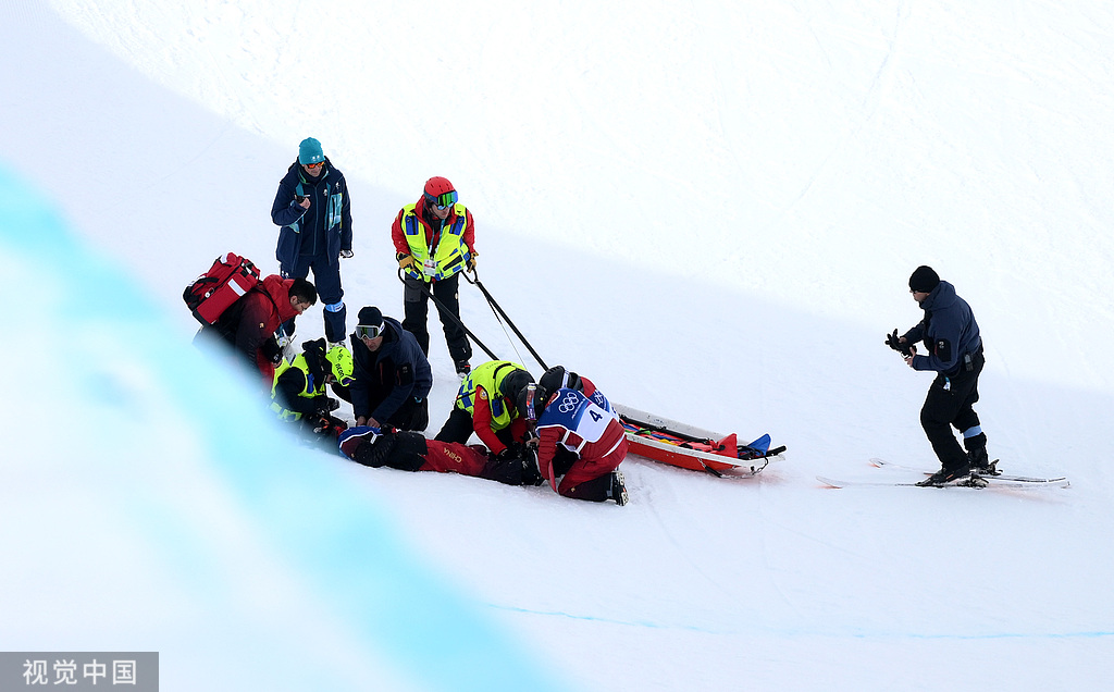 在米兰冬奥会单板滑雪女子U型场面妙技经历赛中,中国选手刘佳宇在完成第二轮滑行终末一个起跳点落地时,体魄失控头部冲下颠仆。医务东谈主员第一技艺进场查验,随后用雪橇将她送入场面医疗室。
