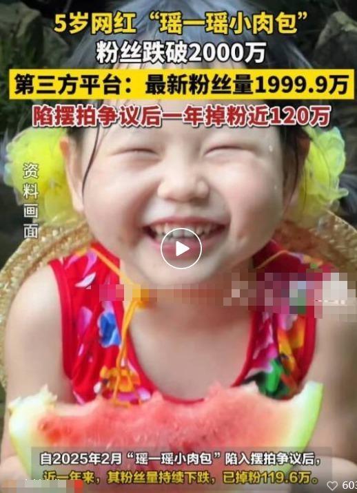 5 岁网红瑶一瑶热度大减,掉粉数目达 120 万,粉丝无法海涵其母亲的行径,“瑶一瑶小肉包”粉丝量跌破 2000 万,其实并不是一个蓦地的数字变化,而是一整年情感、信任与争议不断重叠后的后果,对许多东说念主来说,这个数字更像是一条分水岭,绚丽着公众作风的透顶转向。