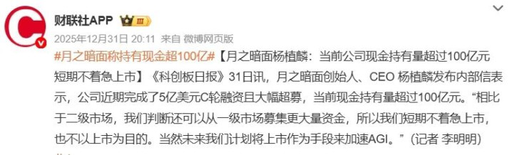“天眼查”清楚,2025年12月月之暗面5亿好意思元的C轮融资由阿里、腾讯、IDG老本投资;2月份新一轮超7亿好意思元的C+轮融资由阿里、腾讯、五源老本、九安医疗、高榕创投等长入领投,高榕创投等老鼓吹连续加码,投后估值超100亿好意思元。