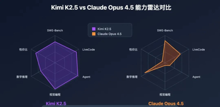 在第三方开发者社区中,有开发者对比了Kimi K2.5 和Claude Opus 4.5,后者与GPT-4o、Gemini 1.5 Pro并排为大众大模子的第一梯队,开发者选型时时时以能否达到Claude Opus水平当作参考。评测清楚,K2.5在数学、视觉编程、波折文窗口、网页交互等智力上齐胜事后者,同期还领有更低的价钱,对中小开发团队极具引诱力。