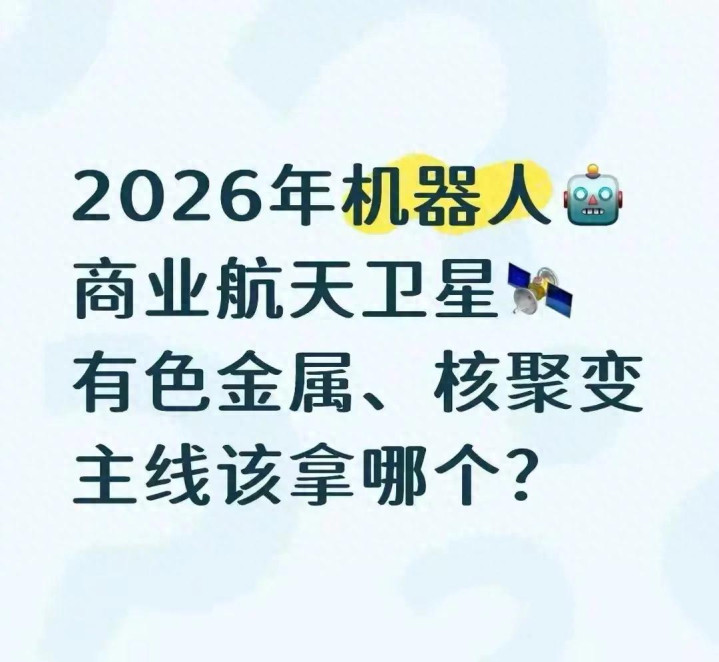 2026年这四个赛说念,看似王人火,但赢利的逻辑完全不同:机器东说念主看落地,卫星守护事,有色看干线,核聚变看永久。投资不是跟风买热点,而是要搞清亮每个赛说念的中枢逻辑,找到真的有价值的企业。但愿这篇分析能帮大家理清念念路,少走弯路,2026年的投资路上,选对赛说念,拿对标的,智力真的赚到钱。