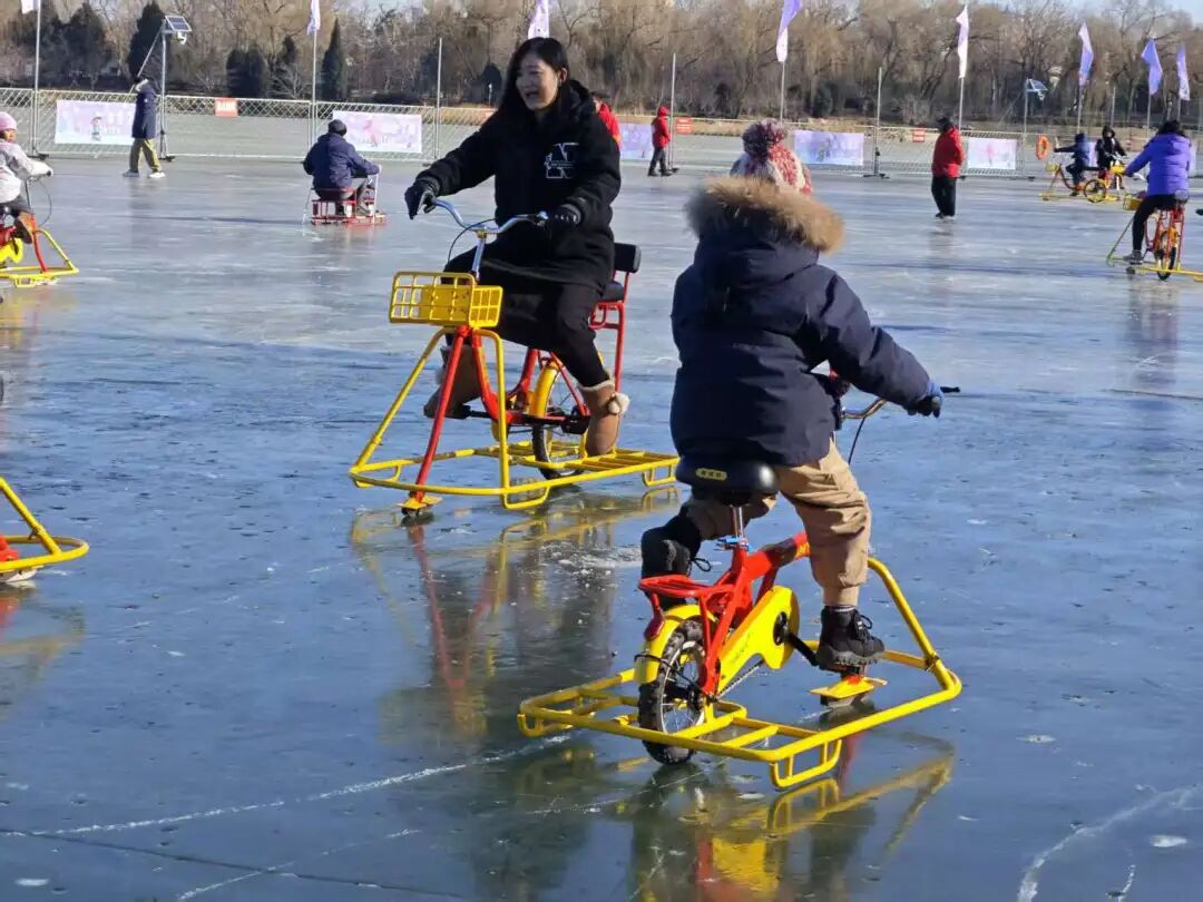 行为承载几代东谈主冰上理解驰念的经典自然冰场,紫竹院冰场本周六盛开,依旧在大湖区域围挡出部分自然冰面,分辩出速滑区与详细游乐区两大功能板块。公园冬季一直延续盛开特质项目“速滑”,为冰上理解敬爱者提供自然优质冰面,大湖速滑区常迎来各路民间能手。详细游乐区则集聚冰车、冰上自行车、电动狗拉雪橇等经典项目,得志全年岁段搭客的游玩需求。