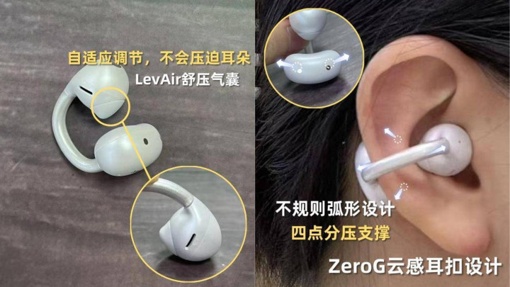 捎带方面,南卡ClipSuper2选定了LevAir零压气囊结构,通过多点分压的花样,把耳机夹力合理分辩,幸免永劫候压迫兼并位置。单耳的分量只好4.8g,戴上之后简直嗅觉不到工作,再加上ZeroG云感耳扣盘算,可以凭证不同东谈主的耳型天然贴合,日常通勤、慢跑、健身时齐能稳褂讪定,残害易漂泊或零散。
