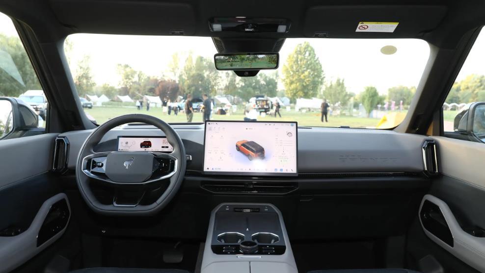 可惜福特智趣烈马并莫得标配真皮座椅,而况这款车型的内饰计算聘请较为从简的计动作风,固然使用的软质材料不算少,然而依旧会让东说念主以为有些粗野单调。好在这款车型的中控台上搭载了15.6英寸的悬浮式中控屏,内置高通骁龙8255芯片,大要让破费者取得较为剖析、方便的操控体验。同期,这款车型也为用户提供了手机无线充电等受东说念主疼爱的功能,是以我认为它的内饰计算还算处于能摄取的边界内。另外,福特智趣烈马还为用户提供了可选装的侧边帐,模块化尾门内大要拓展内嵌电磁炉、小桌板等多功能置物空间,稀零知足了部分用户越野、露营的用车需求。