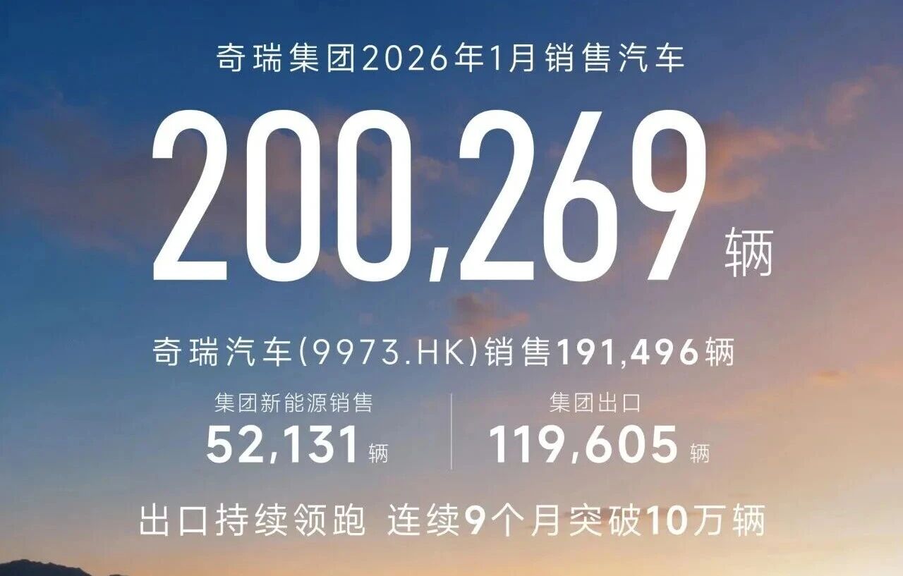 奇瑞总销量20万辆,其中新动力车5万辆,出口11.96万辆,占比近60%。