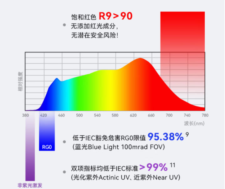 两者齐达到蓝光危害等第RG0的水平,齐得志无蓝光风险的尺度。